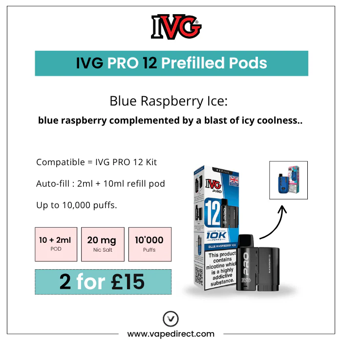 For a long-lasting vape that offers both great taste and performance, the IVG Pro 12 pods can't be overlooked - Get 3 for £15 today!