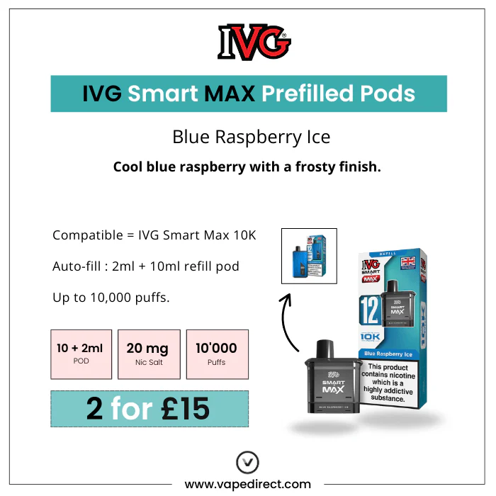 The Blue Raspberry Ice IVG Smart Max refill pack features a bold berry and ice blend that's ideal for all-day vaping. You'll taste sweet and fruity notes of blue raspberry, fused with a frosty finish.