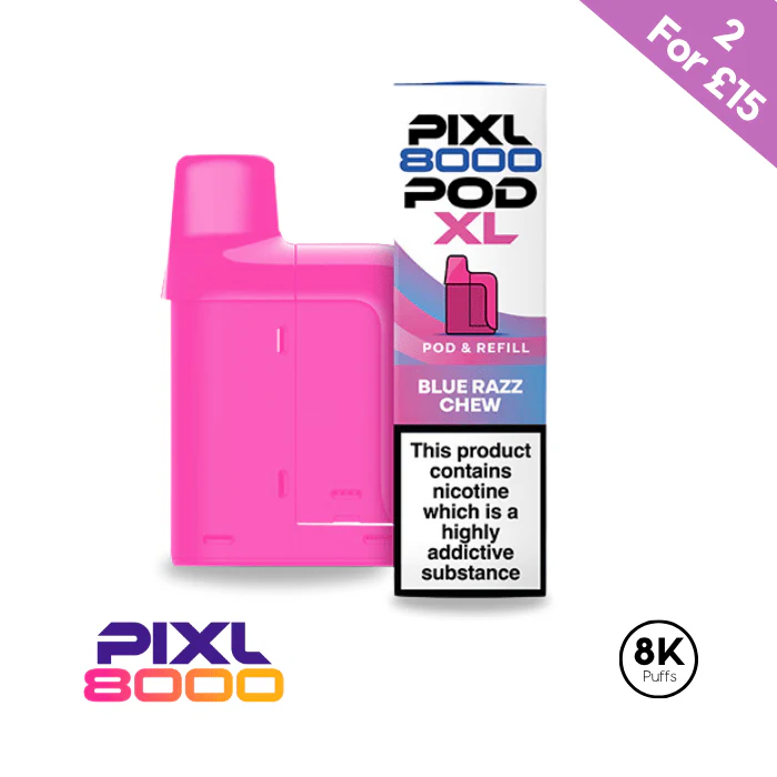 Experience seamless, high-performance vaping with the Pixl 8000 Replacement Pod, designed exclusively for use with the PIXL 8000 Pre-filled Vape Kit to keep your device running at its best. With a generous 12ml e-liquid capacity, this pod system is built for longevity, providing up to 8000 puffs per pod. The innovative design features a 2ml pre-filled pod combined with a 10ml refill tank, ensuring extended use without frequent refills. Whether you’re a casual vaper or a heavy user, this pod delivers a consistently smooth experience.