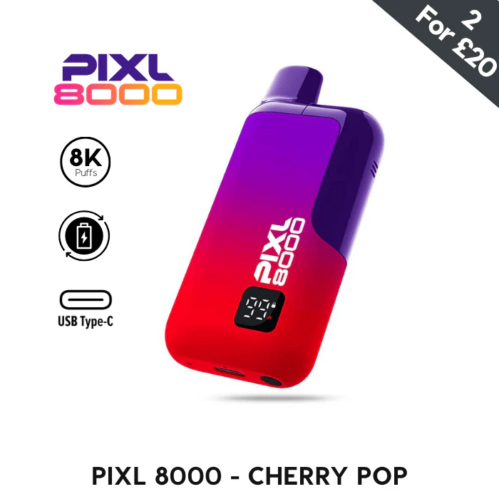 The Pixl 8000 is a longer-lasting big puff vape that's ideal if you're looking to move on from disposable vape kits, or if you're after an easy-to-use device with a higher puff count. Housing a rechargeable 850mAh battery, your kit should last a whole day on one charge. Equipped with a prefilled 2ml pod that houses a mesh coil, along with a 10ml refill container, it’ll provide up to 8000 puffs and will produce a discreet MTL (Mouth To Lung) inhale. It can be recharged quickly via a USB-C cable, and the Pixl 8000 refill packs are replaceable, for a greener way to vape.