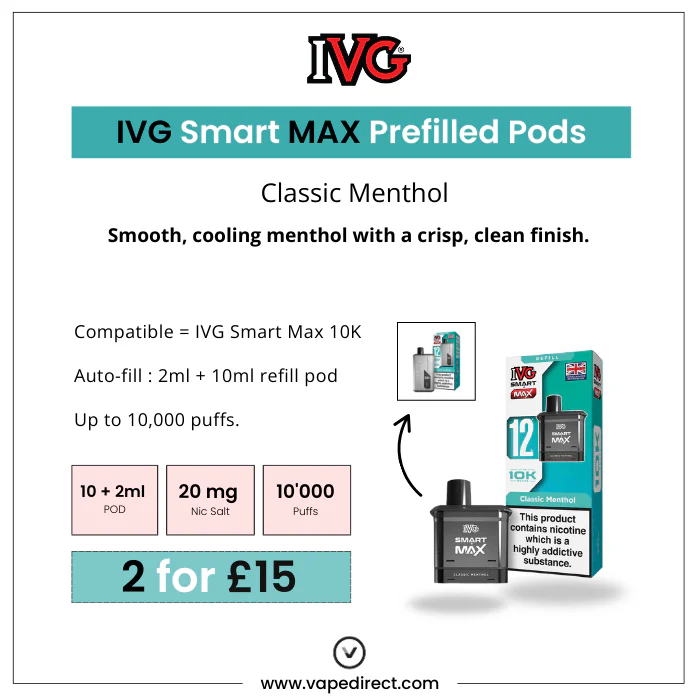 The built-in mesh coil ensures bold flavour with every puff. Only compatible with IVG SMART MAX devices.