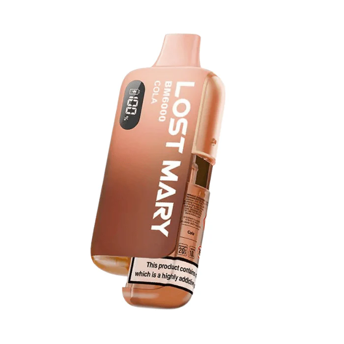 Experience the fizzy, nostalgic taste of cola with the Lost Mary BM6000 Refillable Pod Kit – Cola. Delivering a smooth 20mg nicotine salt hit.