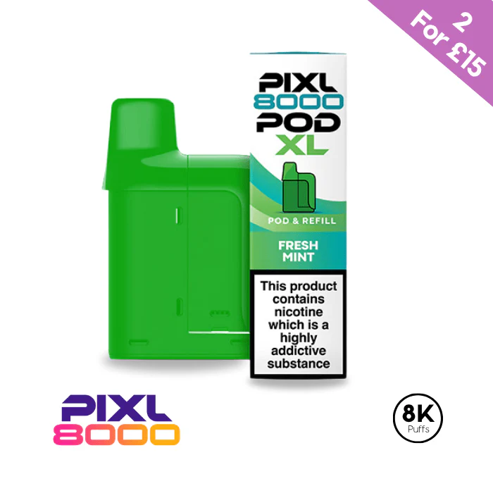 Experience seamless, high-performance vaping with the Pixl 8000 Replacement Pod, designed exclusively for use with the PIXL 8000 Pre-filled Vape Kit to keep your device running at its best. With a generous 12ml e-liquid capacity, this pod system is built for longevity, providing up to 8000 puffs per pod. The innovative design features a 2ml pre-filled pod combined with a 10ml refill tank, ensuring extended use without frequent refills. Whether you’re a casual vaper or a heavy user, this pod delivers a consistently smooth experience.