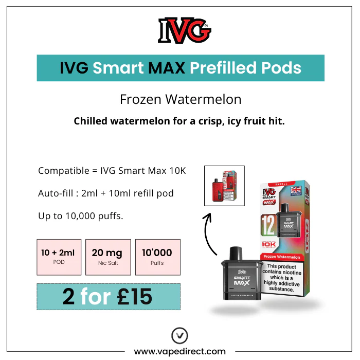 The built-in mesh coil ensures bold flavour with every puff. Only compatible with IVG SMART MAX devices.