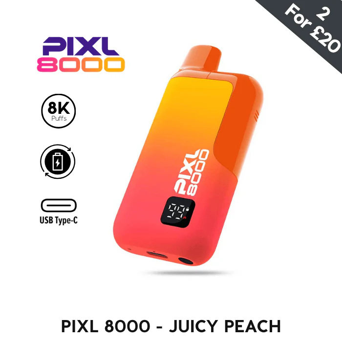 The Pixl 8000 is a longer-lasting big puff vape that's ideal if you're looking to move on from disposable vape kits, or if you're after an easy-to-use device with a higher puff count. Housing a rechargeable 850mAh battery, your kit should last a whole day on one charge. Equipped with a prefilled 2ml pod that houses a mesh coil, along with a 10ml refill container, it’ll provide up to 8000 puffs and will produce a discreet MTL (Mouth To Lung) inhale. It can be recharged quickly via a USB-C cable, and the Pixl 8000 refill packs are replaceable, for a greener way to vape.