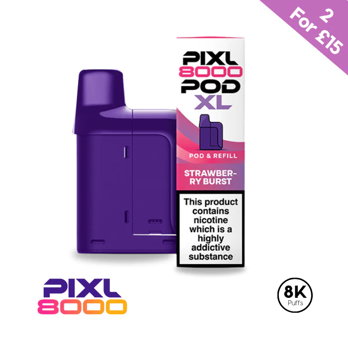 Experience seamless, high-performance vaping with the Pixl 8000 Replacement Pod, designed exclusively for use with the PIXL 8000 Pre-filled Vape Kit to keep your device running at its best. With a generous 12ml e-liquid capacity, this pod system is built for longevity, providing up to 8000 puffs per pod. The innovative design features a 2ml pre-filled pod combined with a 10ml refill tank, ensuring extended use without frequent refills. Whether you’re a casual vaper or a heavy user, this pod delivers a consistently smooth experience.